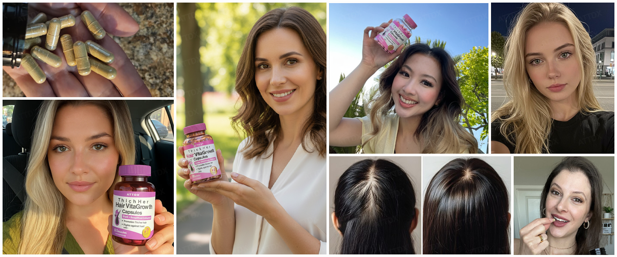 Choose ATTDX® ThickHer Hair VitaGrowth Capsules because it addresses the root causes of thinning by supporting a healthier and longer growth cycle. It works from within to strengthen strands, reduce shedding, and restore natural fullness. With consistent use, you can enjoy stronger, thicker, and more vibrant hair you will love.