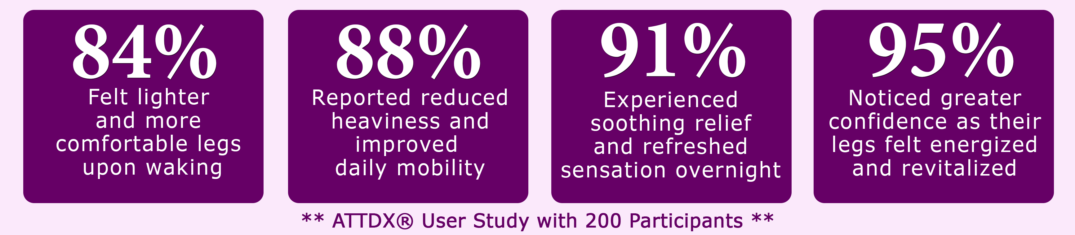 That is why ATTDX® Spray was created to soothe nightly swelling, restore lightness to heavy legs, and help you wake up feeling refreshed and more comfortable.