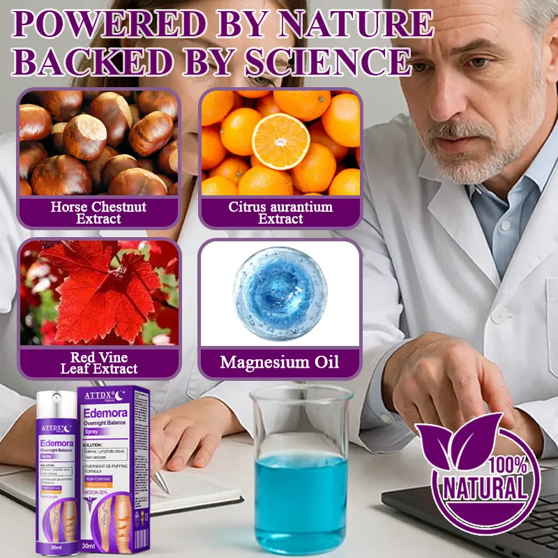 ATTDX® Edemora Overnight Balance Spray is designed to reduce swelling and relieve discomfort, helping you feel lighter and more comfortable. Its gentle, fast-absorbing formula works while you rest, supporting better circulation and overnight recovery. Consistent use promotes a refreshed, energized feeling, making it an easy addition to your daily wellness routine.