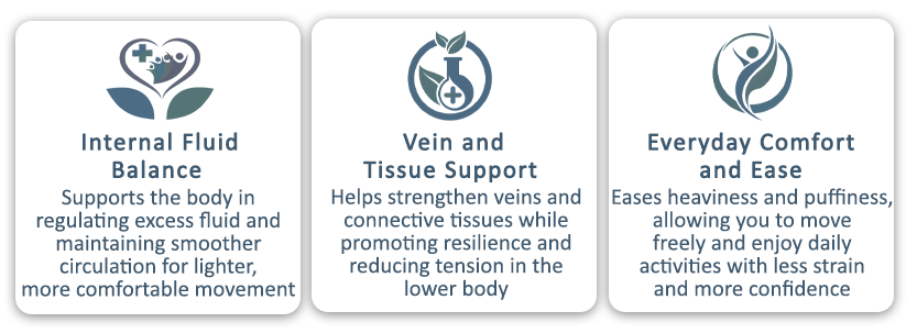 This full spectrum formula works where it matters most by improving circulation, reducing excess fluid, and supporting healthy lymphatic flow while helping veins remain flexible and resilient.
